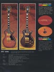 Another classic catalog containing many, many classic and highly collectible Ibanez guitars. This catalog is one of the first issued where no "copy" models included. The guitars featured include the Ibanez Artist Solid-Body Series (models 2622, 2619, 2618 and 2617), the Artist Semi-Hollowbody Series (models 2630 and 2629), the Musician Series (models MC500, MC400, MC300, MC200 and MC100, all in both natural [NT] and dark stain [DS] colors), as well as the newer Professional Series (PF models) and Concert Series (CN). Basses were available in the Musician Series and the "Bob Weir" and "Artwood Twin" models were also still offered.